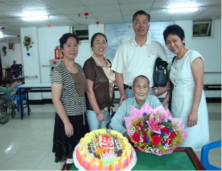 當公司祝壽人員和養(yǎng)老院的工作人員一起為百歲壽星唱響生日歌的時候,老人的女兒激動地眼含熱淚說:“共產(chǎn)黨好,四化建好,我父親退休這么多年了,單位還牽掛他,真誠地關愛他的晚年生活,讓我們做子女的深受感動……。”