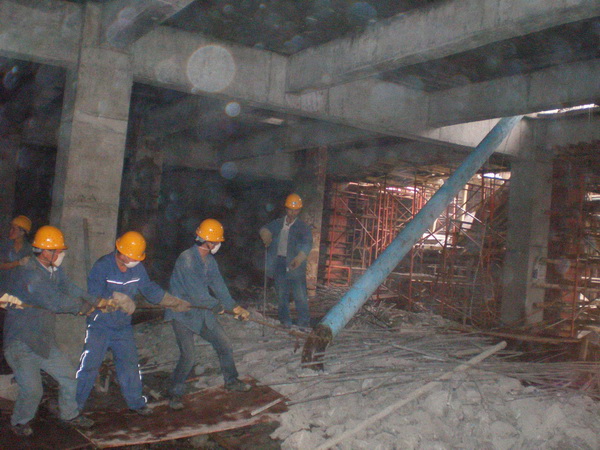 針對作業(yè)面在地下負二層,光線較差、通風不暢,同時土建單位正在拆除臨時支撐,施工現(xiàn)場工作環(huán)境相當惡劣等情況。為保證現(xiàn)場施工正常有序的進行和施工人員身體健康,項目部采取相應措施保證了整個現(xiàn)場的安全、照明、通風。施工人員發(fā)揚四化建吃苦耐勞、敢打敢拼的精神,長期冒雨作業(yè)。吊裝中有吊機運行不到的地方,就積極開動腦筋,用技巧、經(jīng)驗和人力,保證前期設備及管道的吊裝倒運,為后期的施工做好了良好的鋪墊。