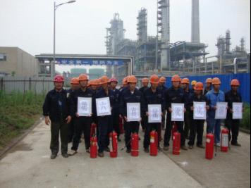 活動(dòng)得到了建滔化工集團(tuán)(揚(yáng)州)置年石化有限公司的大力支持,業(yè)主質(zhì)安部詹建華主任、羅仁宏副主任不但為我們提供了活動(dòng)場(chǎng)地和部分滅火器材,還親臨現(xiàn)場(chǎng)觀摩和指導(dǎo)工作。