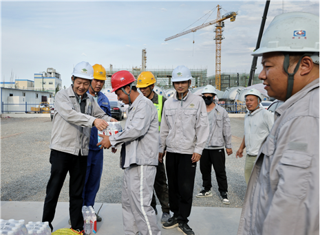 近日,華北公司赴廣西宏坤、山東裕龍項目開展“夏送清涼保安康”活動,為一線作業(yè)人員送去了西瓜、涼茶等慰問品,叮囑作業(yè)人員在施工過程中采取有效防暑降溫和安全生產(chǎn)保障措施,避免高溫時段疲勞作業(yè),防止高溫中暑和其他各類生產(chǎn)安全事故的發(fā)生。
