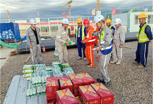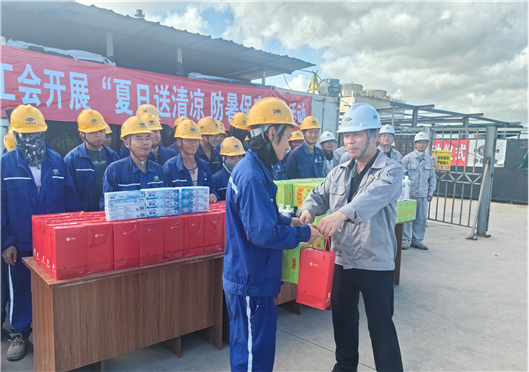 近日,江西公司積極開展“工會送清涼 防暑保安康”主題活動,為在山東裕龍石化儲運項目、內(nèi)蒙古 PVB 項目等一線高溫環(huán)境下施工的員工送去清涼與慰問,囑咐他們在抓好項目建設(shè)的同時,認(rèn)真做好防暑降溫工作,科學(xué)合理安排工作時間,避免高溫時段戶外作業(yè),確保安全、順利、高質(zhì)量完成建設(shè)任務(wù)。