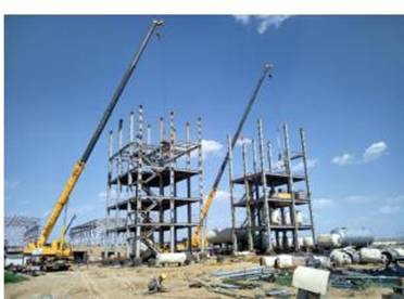 針對項目工期緊,任務(wù)量大,施工條件艱苦(缺水、風(fēng)沙較大)等情況,為保證施工的進度、質(zhì)量、安全和效益,該項目部從勞動力投入、材料和機具設(shè)備的配置及夜間趕工等方面作了詳細(xì)計劃和部署。在保證施工質(zhì)量和安全的前提下,夜間施工安排電工跟班,隨時排除現(xiàn)場電力故障,合理安排夜間施工工序和作業(yè)內(nèi)容。現(xiàn)場人員發(fā)揚“五加二”、“白加黑”的苦干精神,采取加班延點或倒班制,想方設(shè)法加快施工進度。由于現(xiàn)階段該設(shè)備安裝主要為拆遷后的材料及設(shè)備,現(xiàn)場急需對其進行分類組裝。施工班組利用晚上加班對拆遷的材料和設(shè)備進行分類,白天照樣進行吊裝焊接作業(yè),既保證了施工進度,又確保了焊接質(zhì)量,獲得了業(yè)主的認(rèn)可及贊許,為分公司承建寧夏得中化學(xué)二期頗大的施工項目創(chuàng)造了有利條件。(圖為2-甲基吡啶裝置儲罐吊裝作業(yè)。)