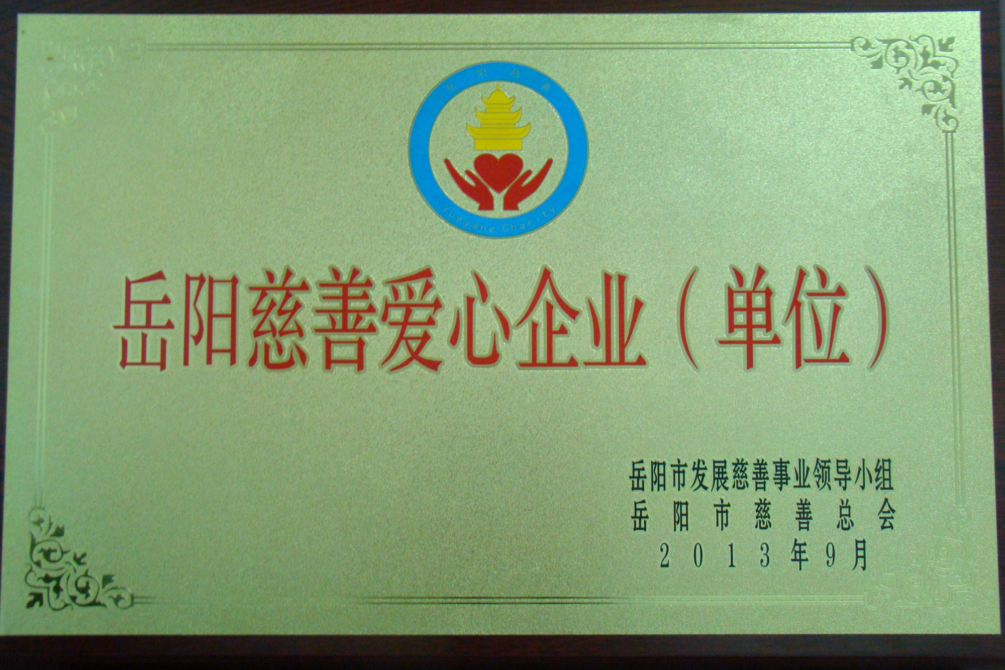 公司獲“岳陽市慈善愛心企業(yè)”榮譽稱號